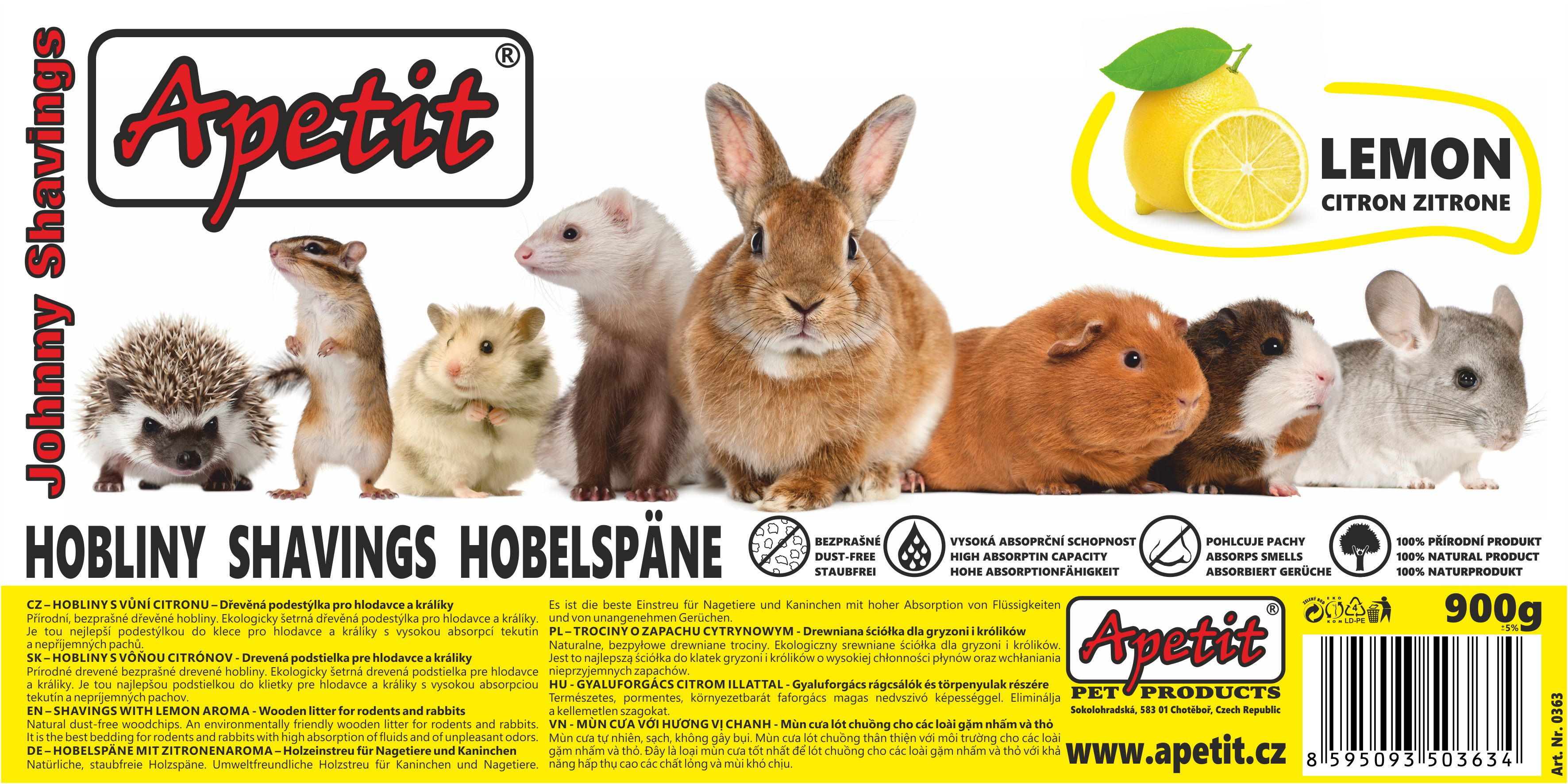 CZ – HOBLINY S VŮNÍ CITRONU – Dřevěná podestýlka pro hlodavce a králíky