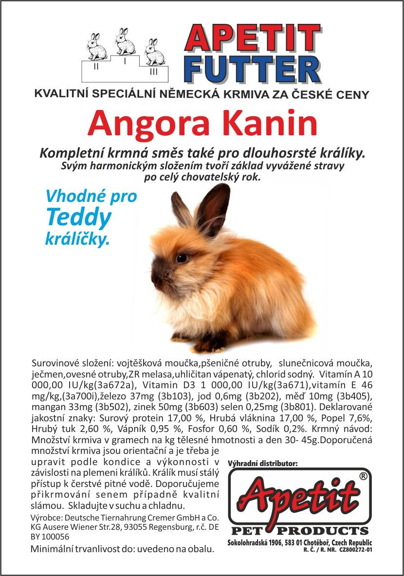 APETIT FUTTER Angora Kanin pro dlouhosrsté králíky 800g