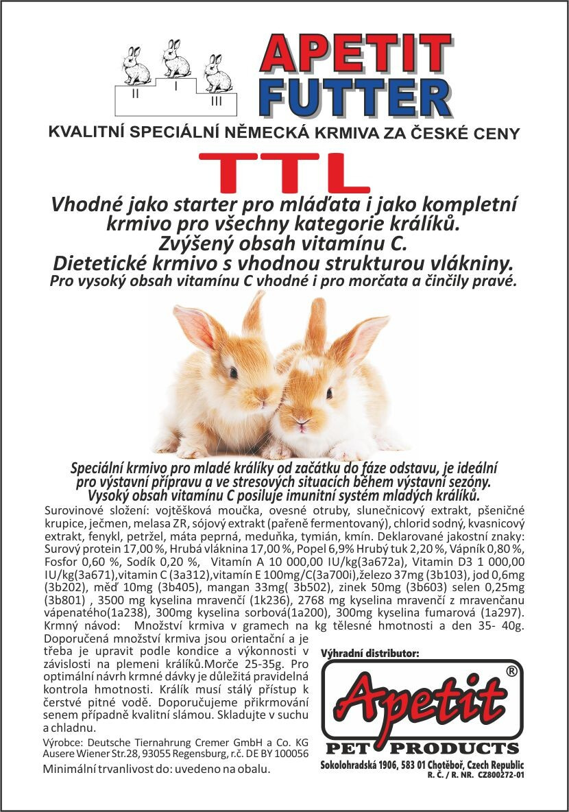 APETIT FUTTER TTL pro mladé králíky a kojící samice 2,2kg